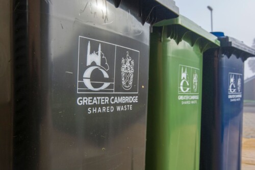 See South Cambs Magazine for correct use of blue, green and black wheeled bins or visit the website.